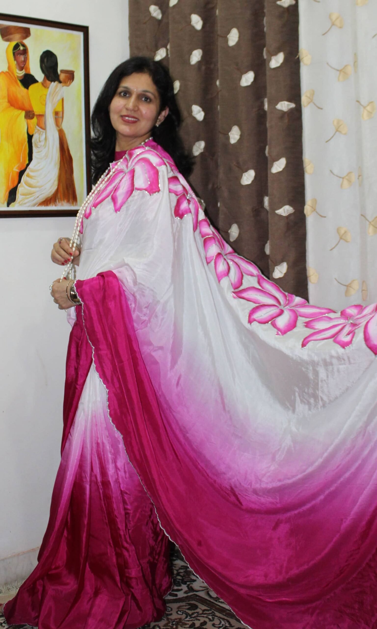 Ideal for festive gatherings, cultural evenings, celebrations, and elegant daytime or evening wear, this saree blends artistic femininity with refined charm.
